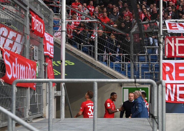 With the referee bringing a halt to the game, it was left to Bayern’s players and coaching staff to try and talk their supporters around.