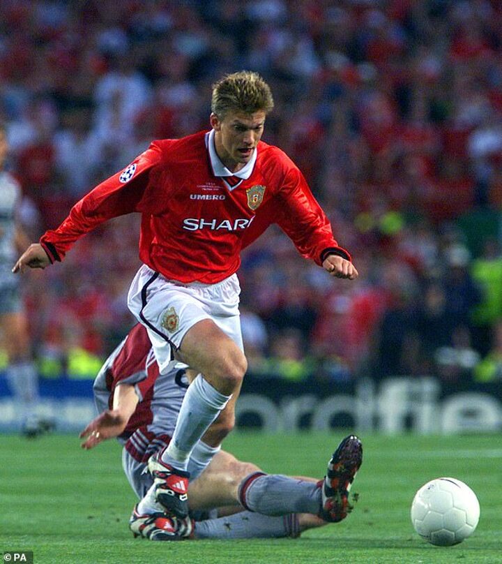 Becks scored a crucial equaliser against Tottenham to secure the Premier League title on the final day and delivered both corners in that dramatic Nou Camp finale.