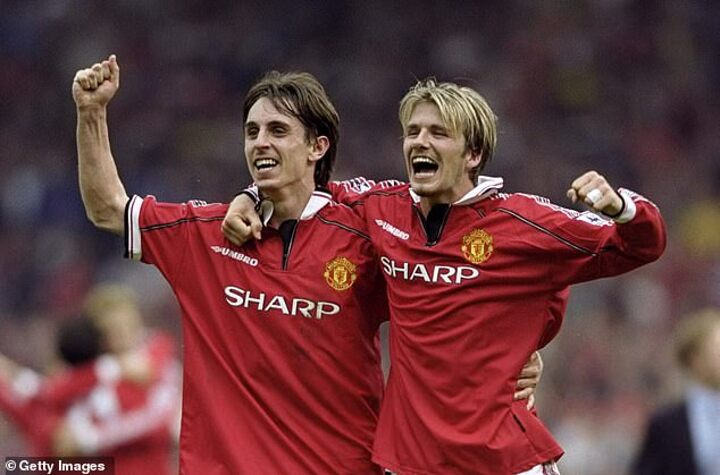 Right back Neville played 54 club matches during the Treble campaign and established himself as a reliable figure in the United back line - as he would be for the next 12 years.