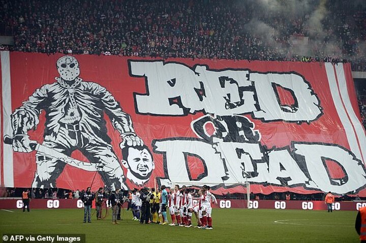 Home fans had no moral line to their protests as they unfurled a huge 'Red or Dead' banner which showed a tifo with Defour's decapitated head on it.