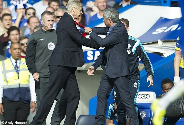 The Arsenal boss responded by flicking his tie. Hefty blow. In 19 meetings in all competitions, Mourinho only lost twice to Wenger. Talk about having your opponent's number.