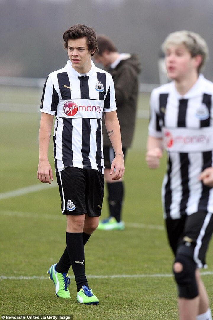 Later that same year Styles and his then-bandmates travelled to Newcastle United's training ground, enjoying a kick-about with staff on the pitch whilst wearing the Magpies' famous black and white shirts.