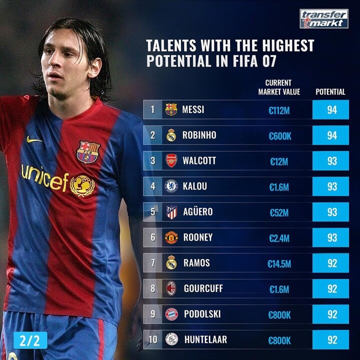 Messi was rated the talent with the highest potential in FIFA 07 alongside Robinho while Ronaldo ranked only 15th.
