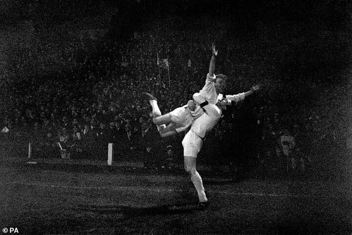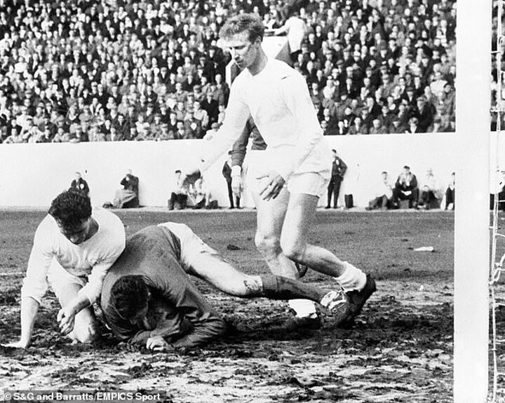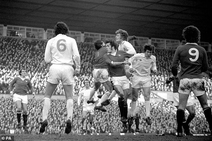 A contest of agricultural tackles saw Jack Charlton and Denis Law throwing punches at one another, the Man United striker playing the final 20 minutes with his ripped shirt hanging off his shoulder.