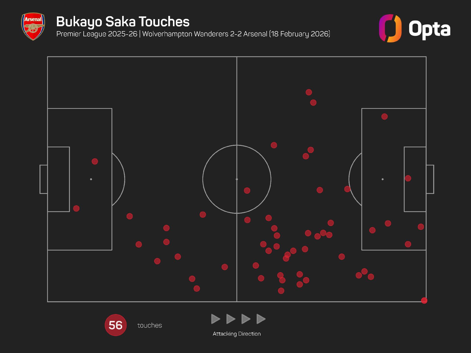 Saka has started Arsenal's last two games in a new-look number 10 position, and none of his team-mates bettered his six touches in the opposition box on Wednesday.
