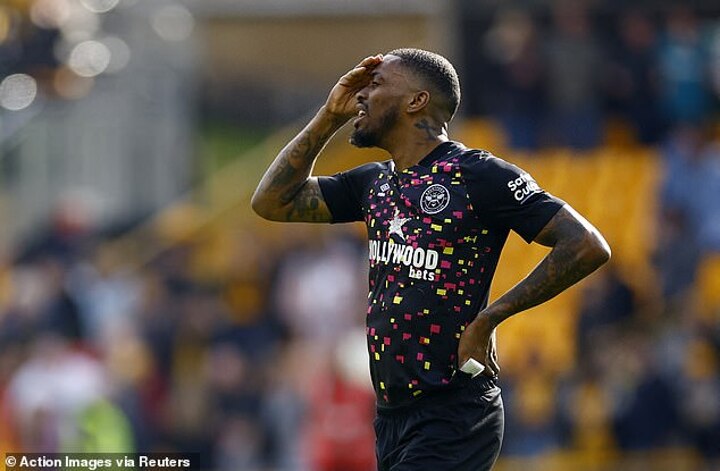 Toney saw a shot deflected on to the bar in stoppage-time; it was not his day.