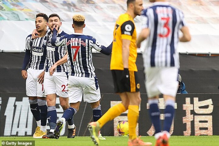 Matheus Pereira gave West Brom the lead with a penalty in the eighth minute. He was embraced by Robert Snodgrass, who was then hugged by Callum Robinson - who had won the spot-kick.