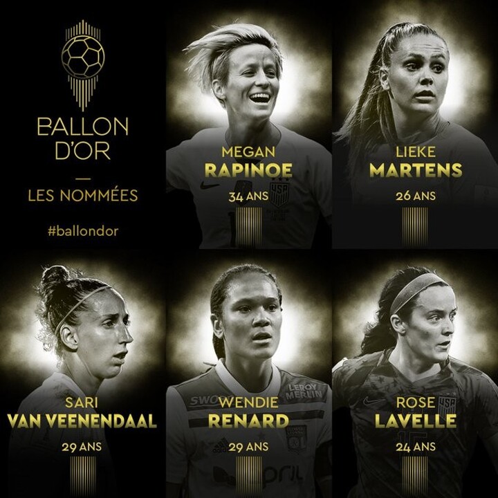 The 20-name list was revealed by France Football on Monday, including a whole host of the USA's World Cup winners and Lyon's treble-winners.