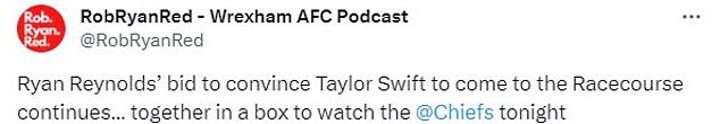 Wrexham owner Ryan Reynolds was spotted watching an NFL game with superstar singer Taylor Swift this weekend - and some fans are convinced he is on a charm offensive to bring her to the Racecourse Ground.