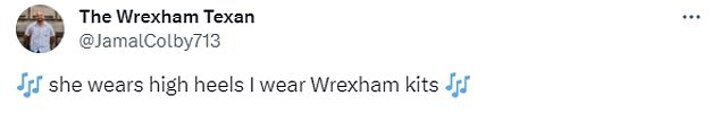 One simply said: 'Make it happen Ryan!', while another made a reference to the singer's hit song You Belong to Me, writing: 'She wears high heels I wear Wrexham shirts.'