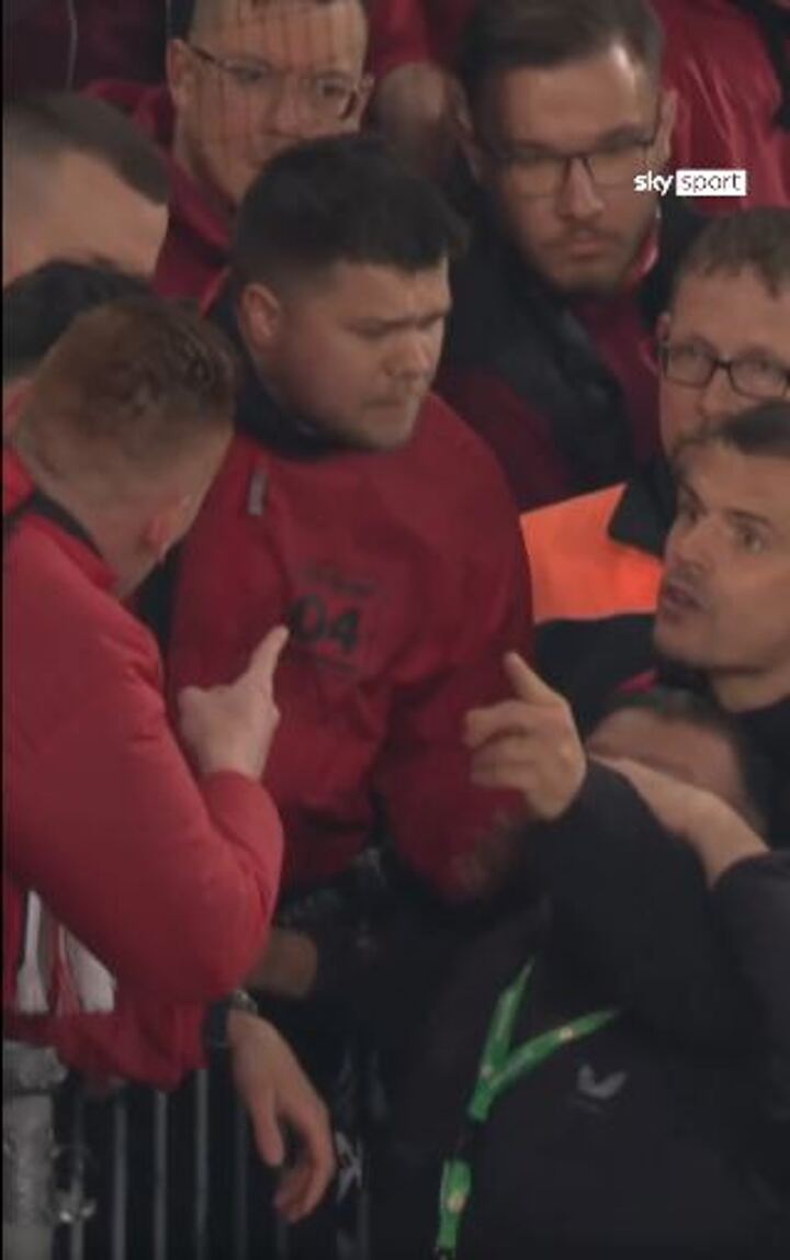 A Bayer member of staff tried to calm the raging fan down but Xhaka continued the intense exchange as another man joined the fiery debate.