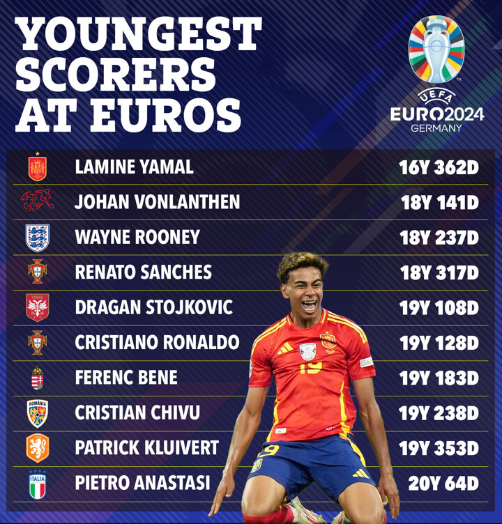 The youngest ever goalscorer at the Euros, also becoming the youngest player to ever start a major semi-final - claiming that title from Pele.