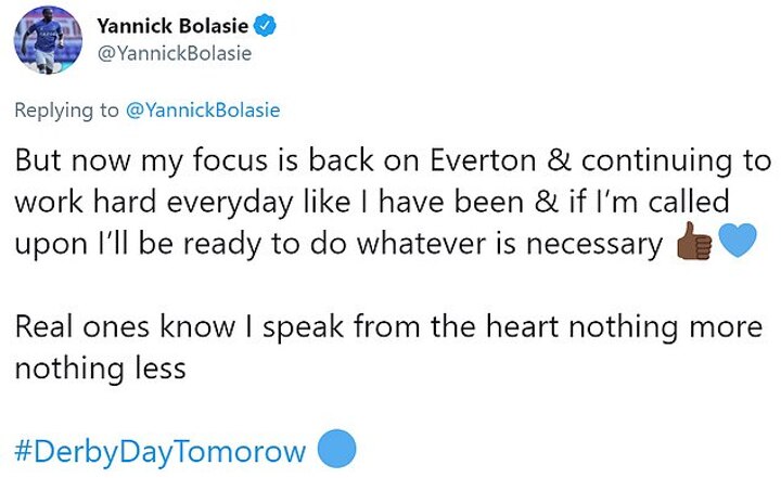 After realising his move to the north east wasn't going to happen, Bolasie had used Twitter to inform fans he would remain at Everton.