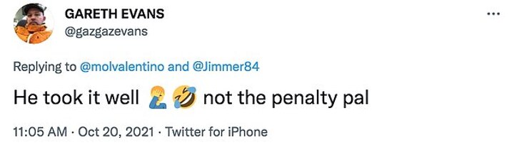 While the shot would have almost certainly stung, the steward admirably didn't let the incident dent his pride as he laughed off it off with the travelling supporters behind the goal.