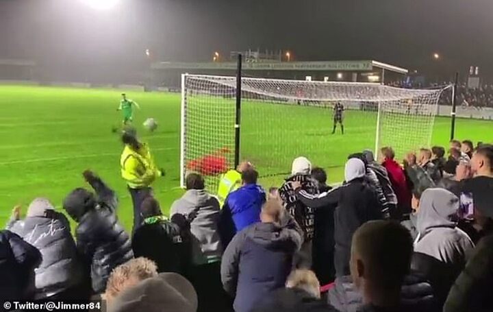 With his attention off the action, the unnamed steward had little time to react when Knowles horribly shanked his effort wide of the upright, with the ball travelling at speed.
