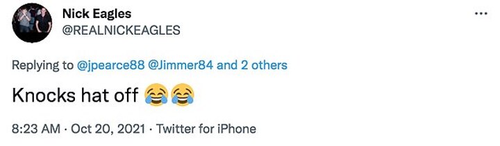 Another eagle-eyed fan noticed how the steward's hat was knocked off his head, given how hard Knowles struck the ball.