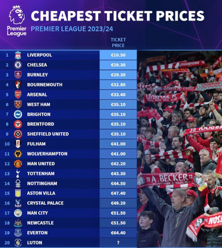 Liverpool have the cheapest ticket prices in the Premier League this season.