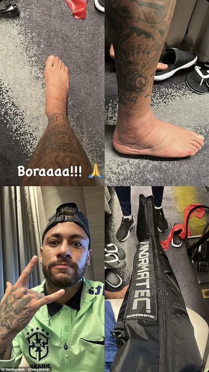 And with the key man ruled out for the rest of the group stages, he's taken to social media to share images of the damage, revealing a visibly swollen and sore ankle, and another with it in protective material.