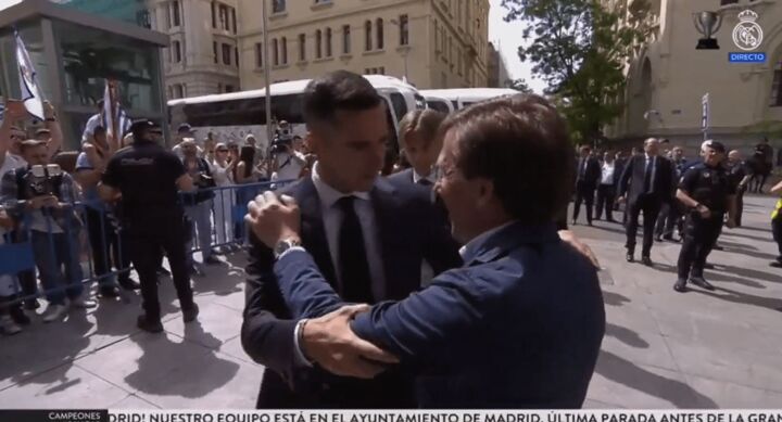 Almeida greeted the entire Real Madrid team upon their arrival at City Hall, and he shared a humorous moment with Lucas Vazquez, who asked him whether he’d swap sides in the Madrid rivalry – Almeida is a well-known fan of Atletico Madrid.