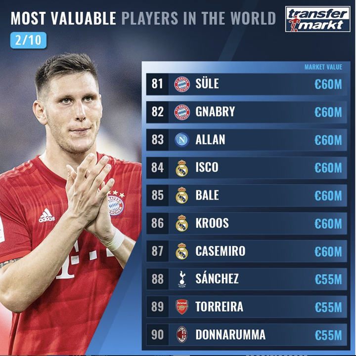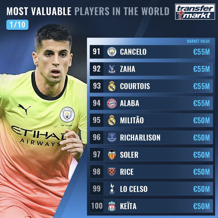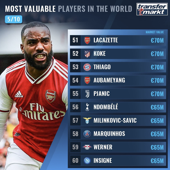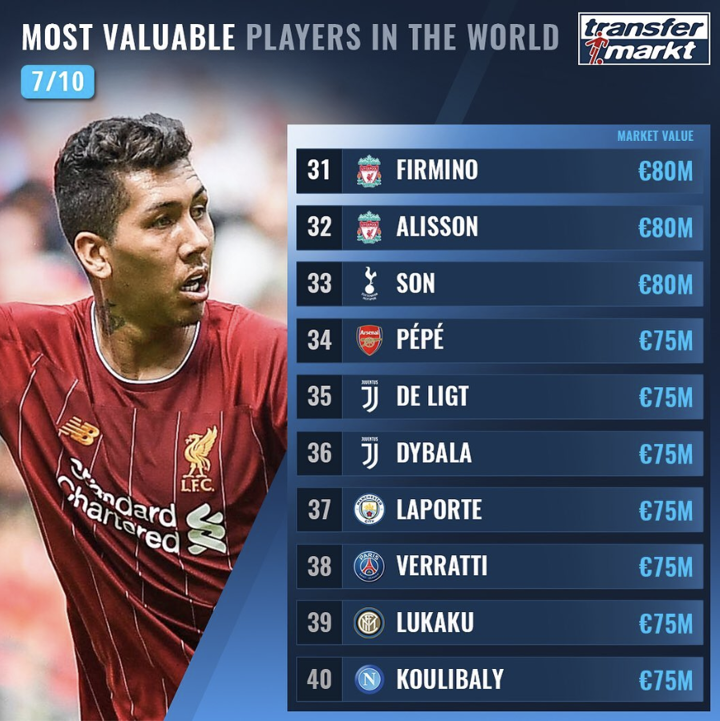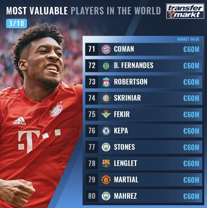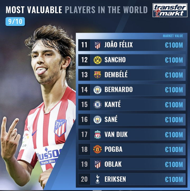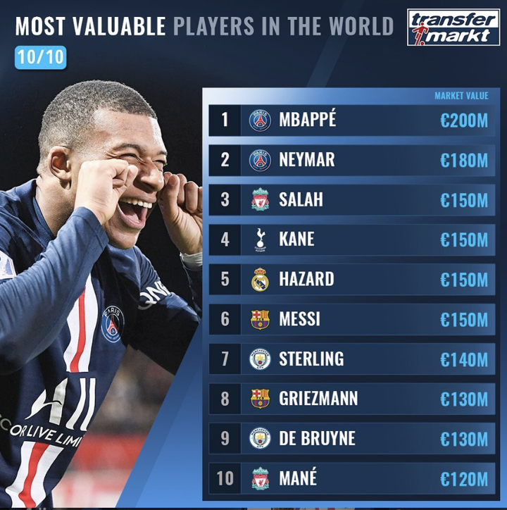 Transfermarkt gives the latest updates on football stars' market values as Mabppe dominates the list.