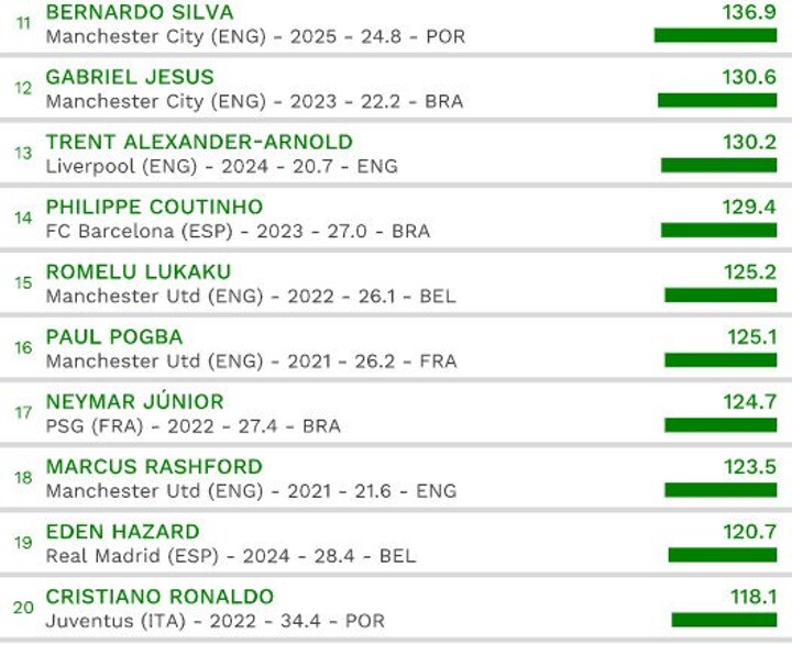 It's in that 10-20 bracket that both Neymar and Cristiano Ronaldo sit with it being revealed this week that the Brazilian had lost up to €90 million on his valuation just since the start of 2019.