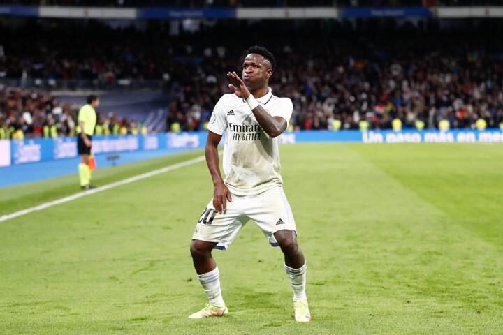 Vinicius Jr celebrated his goal last night in typical fashion (Photo: Oscar J. Barroso/Europa Press via Getty Images).