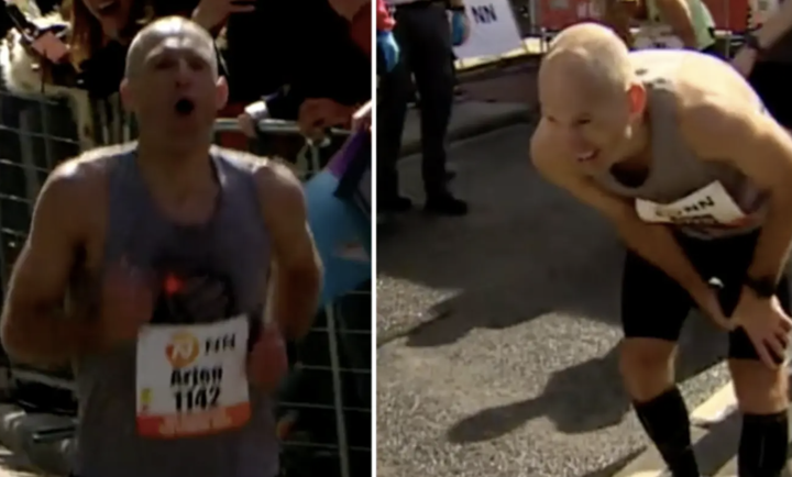 But footage of Robben running the race shows him feeling the effects of such a mammoth sporting task and he admitted afterwards it was a "real fight".