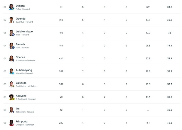 8. Adeyemi (Borussia Dortmund) – 35.6 km/h