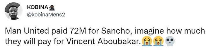 Meanwhile, one fan posted: 'Man United paid 72M for Sancho, imagine how much they will pay for Vincent Aboubakar.'