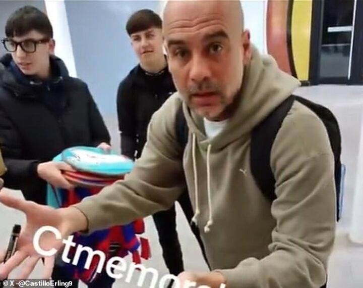 The video then ends with Guardiola believed to depart the scene and go about his business as the autograph hunters are left rather red-faced from their surprise dressing down.