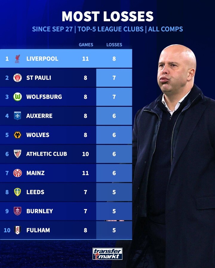 8 of 11, LIV lost the most among the top 5 leagues since the end of September