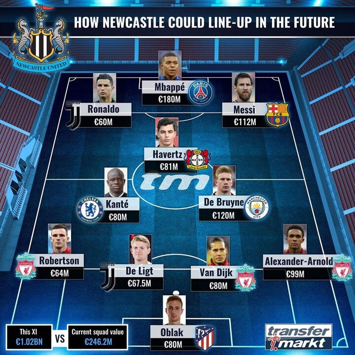 By then, they will be able to spend huge money on the players they want to buy. Here is a possible squad of the Premier League side in the future, which is worth 1.02 billion euros.