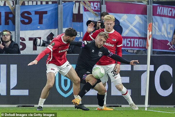 Moyes’ side sat deep, watching their hosts play in front of them, waiting for their chance to strike. It worked a treat for much of the first half: though Alkmaar saw two-thirds of the ball, West Ham had the opening two chances. Jarrod Bowen dragged a shot wide from the edge of the box before Lucas Paqueta curled an effort on to the post following brilliant work from Antonio.