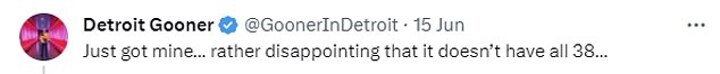 Another said: 'Just got mine. Rather disappointing it doesn't have all 38...'