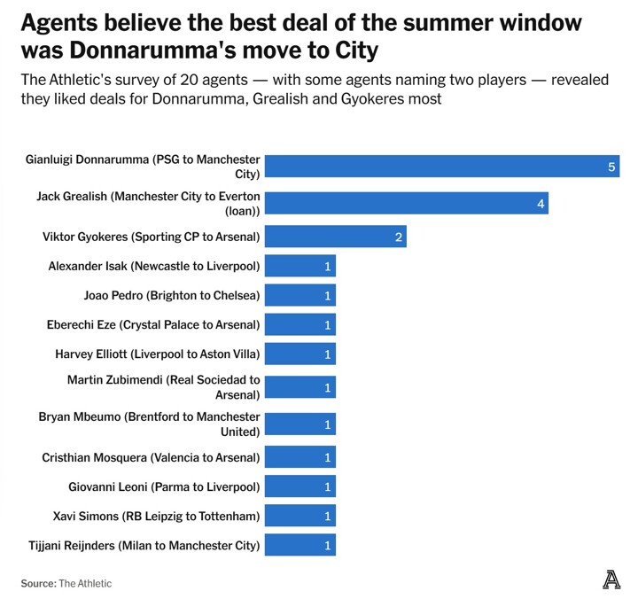 Recently, The Athletic released its 2025 Agent Survey, which analyzed this record-breaking summer transfer window. The survey invited 20 agents.