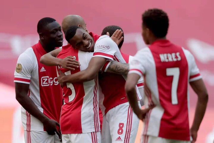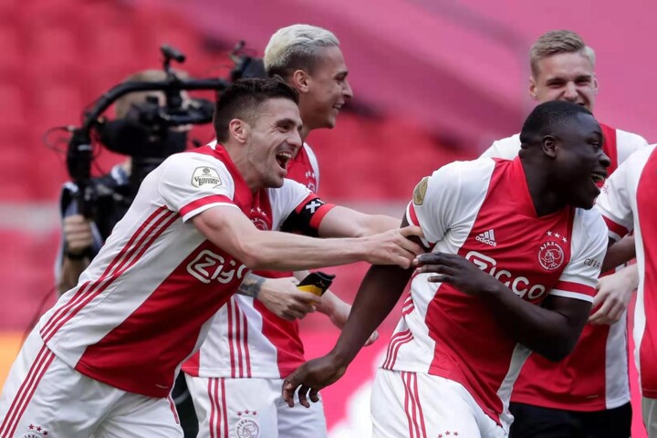 Ajax won the Dutch Eredivisie league title Sunday for the 35th time when it beat Emmen 4-0 as police appealed in vain to supporters not to gather outside the Johan Cruyff Arena to celebrate.