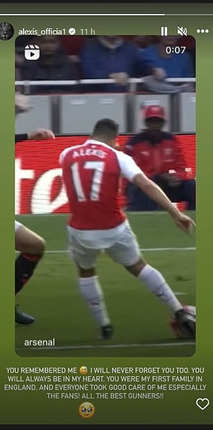 However, Erik ten Hag's confident Reds won't be receiving any messages of support from former underachiever Sanchez, who has posted on his Instagram highlighting his love for the Gunners.