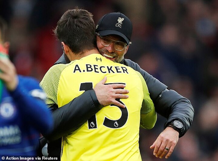 Jurgen Klopp was keen to heap praise on his man between the sticks, later saying: 'There were 10 minutes when Chelsea changed their system and had their chances and Alisson saved our life.