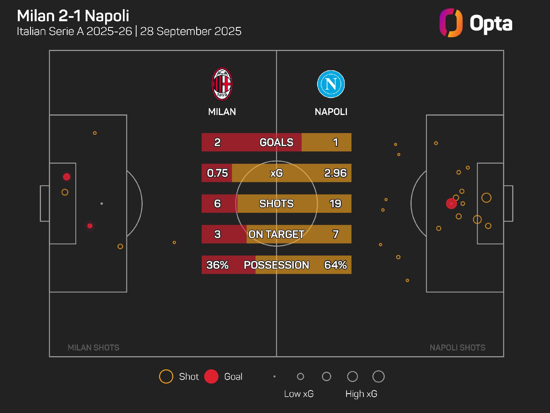 Despite having Pervis Estupinan sent off early in the second half, Milan – who had gone 2-0 via goals from Alexis Saelemaekers and Christian Pulisic – held on for a 2-1 victory.