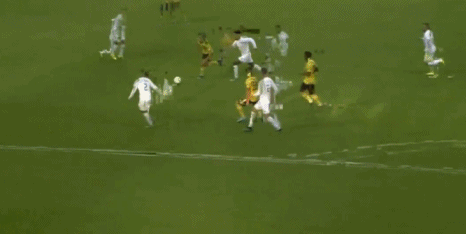 The home side have been on top, and they take the lead as the ball is slipped in behind the defence and El Melali races on to it, takes it around Martinez and slips it into the empty net.