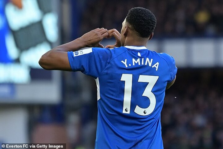 The fan again gave his support to the 28-year-old, saying: 'Show them that you're the man then lad. Be our captain, wear the armband', before Mina responded: 'I'm sorry for this', in reference to Everton's situation.