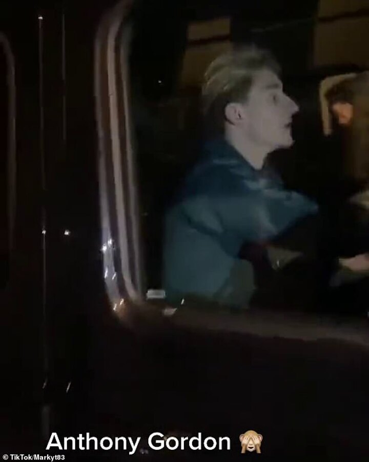 TikTok footage shows the fan sprinting down the road to catch up to Gordon's window before shouting through the driver-side window: 'You f***ing d***head. Eh! K***head. Gordon! What the f***, like? F*** off! Get out of our club.'