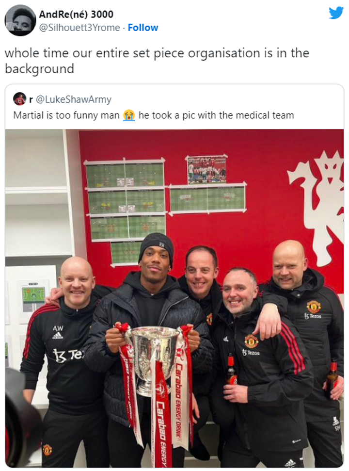 After the match, Martial posted a photo on Instagram of him posing for a group photo with United's medical staff.