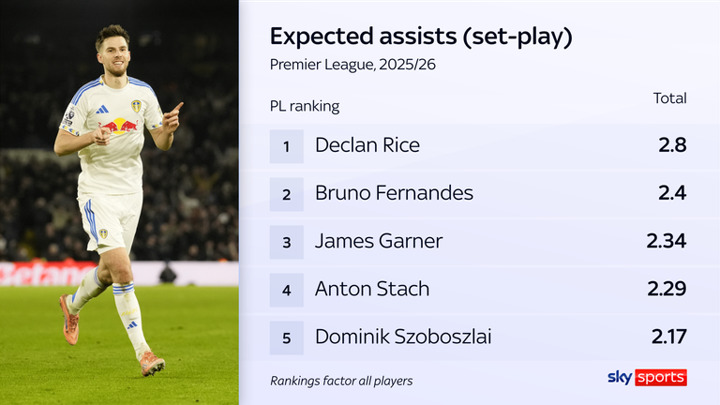 No player has created more chances from set plays in the Premier League this season than Stach's 27, level with Fernandes. The Leeds cause is profiteering in a big way because of it, with a higher share of their league goals scored via set-pieces than any other side (13/37).