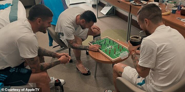 The documentary pulls on heartwarming scenes of Messi playing poker with his teammates and their testaments to the star, including Martinez's bold claim that he would 'die in goal' for him.