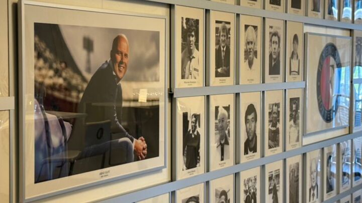 At De Kuip, the media centre has a head coach hall of fame. Slot and all his predecessors are pictured - Ruud Gullit, Giovanni van Bronckhorst, Jaap Stam, Dick Advocaat and Ronald Koeman among them.