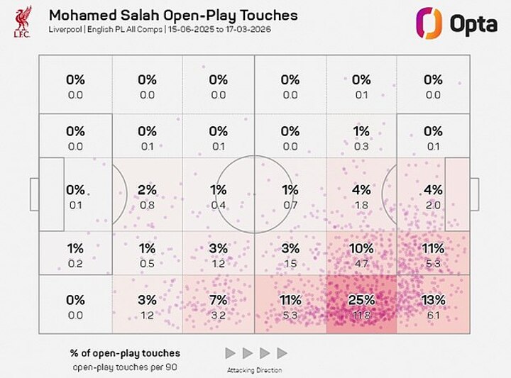 And having him closer to the box means Liverpool can utilise his undoubted finishing prowess without him having to start wide and beat a man - an ability which has been on the wane this season - before he can attack the goal.