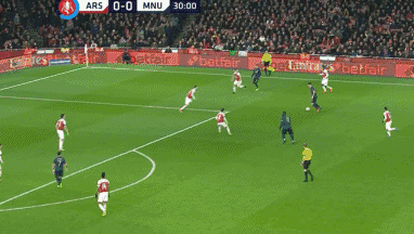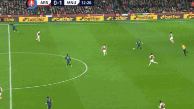 Goals are proving like buses in this game. Arsenal bomb forward on the attack, but when United win the ball on the edge of their own box they counter like a rocket. A long pass out to Lukaku on the right is perfect for the forward, who races away with Kolasinac upfield.