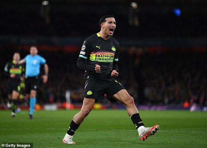 PSV were the better team in the second half but denied by Raya saves and careless finishing before Driouech scored the sweetest goal of the night, a delectable chip, before the closing stages were disrupted by substitutions.