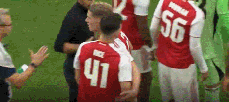 Arsenal XI: Christian Nørgaard, David Raya, Merino, Viktor Gyökeres, Ben White, Martinelli, Saliba, Saka, Kiwior, Nwaneri, Lewis-Skelly